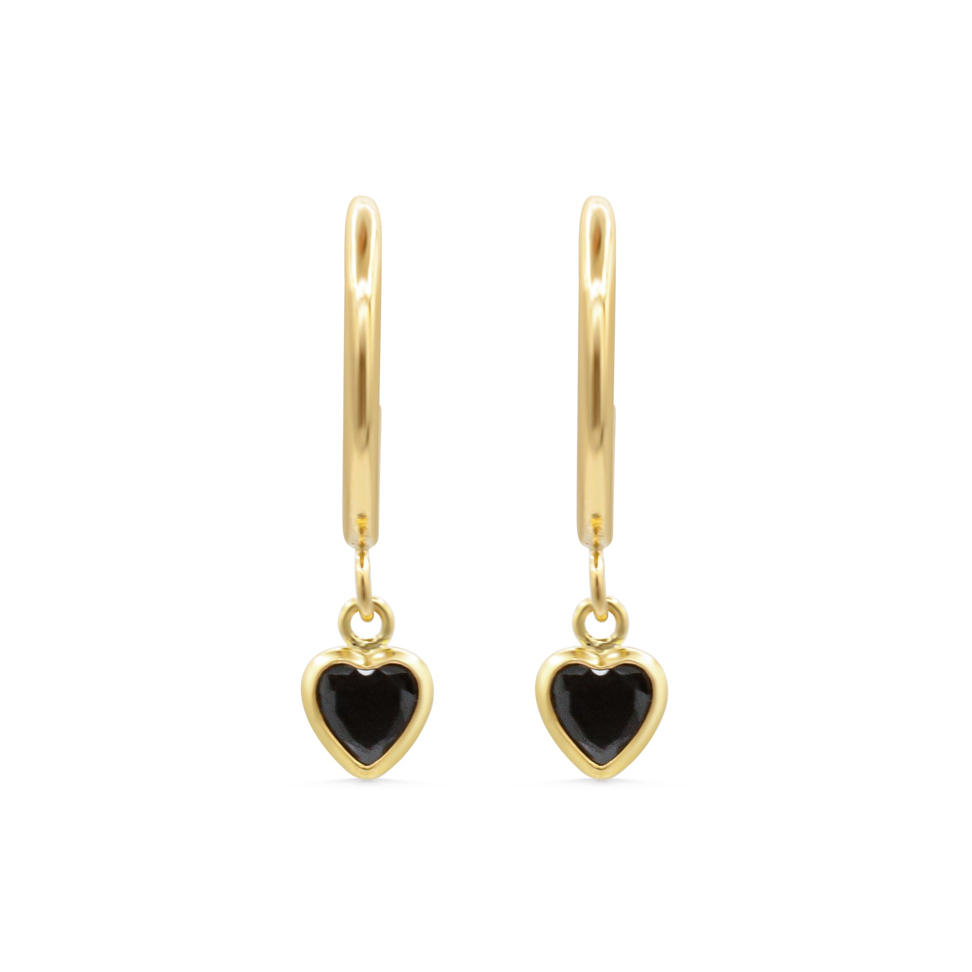 Add a touch of edge and sparkle to your everyday style with these 3/4 hoops featuring sleek black CZ heart charms. Crafted in 14K gold fill, they strike the perfect balance between timeless and trendy—lightweight, luminous, and full of personality. Perfect for everyday wear or dressing up a minimalist look.