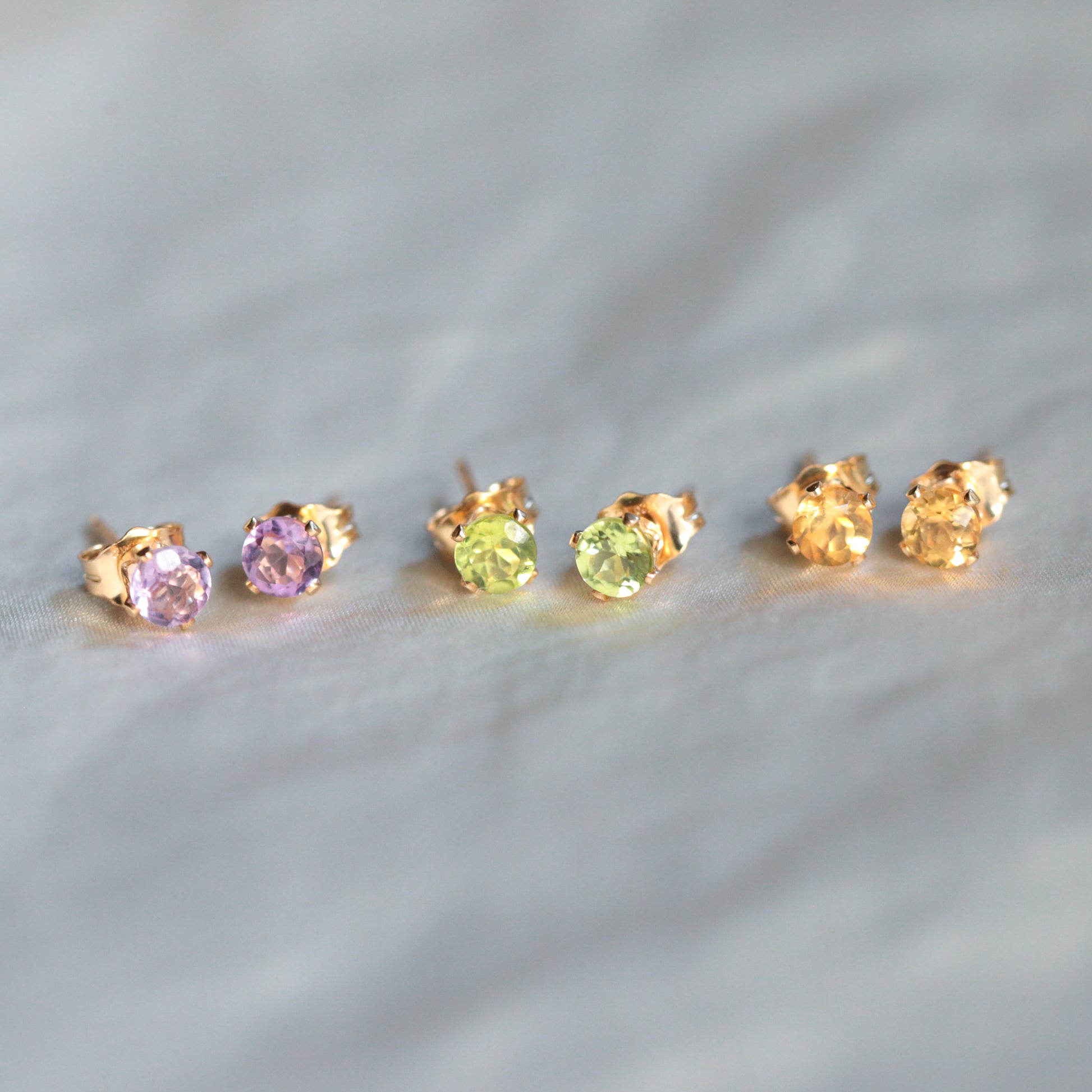 Handcrafted in Vancouver, these 4mm peridot studs glow with fresh green tones that symbolize renewal and vitality. Set in 14K gold fill, they bring a lively burst of color and positive energy to your everyday style.
