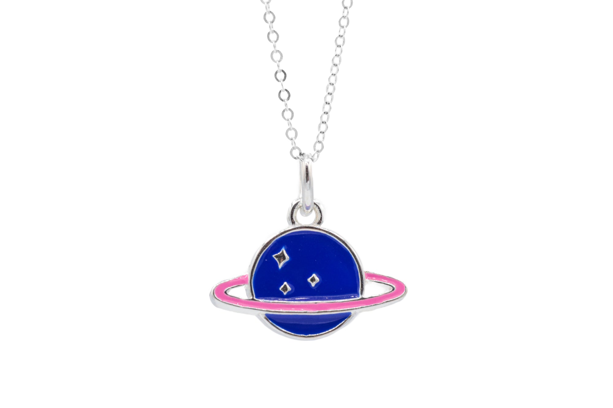 Enamel planet pendant necklace on a sterling silver chain [16" in length]