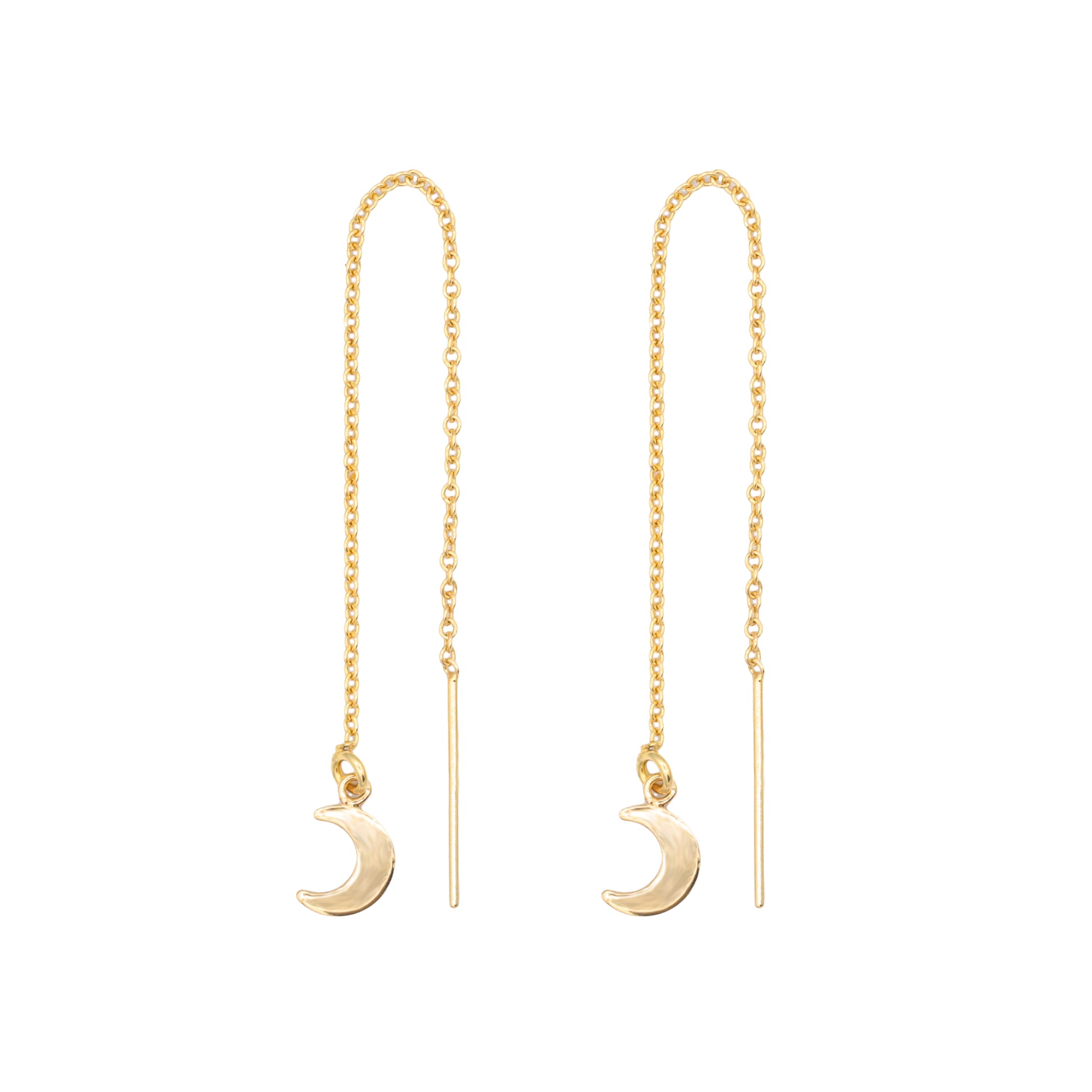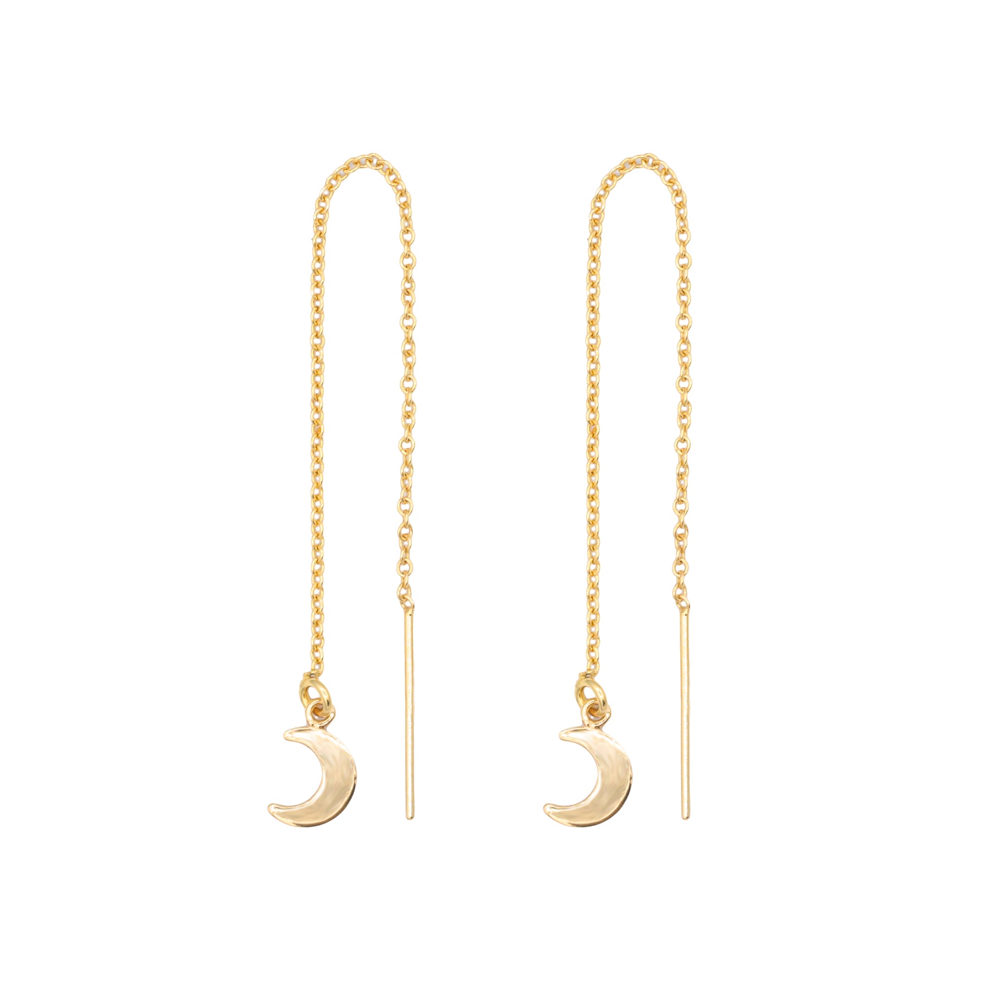 Elevate your style with these dainty crescent moon threader earrings, crafted in 14K gold fill and gold vermeil. Their minimalist design adds a soft celestial touch to any look, while the lightweight, thread-through style offers comfortable wear from day to night.