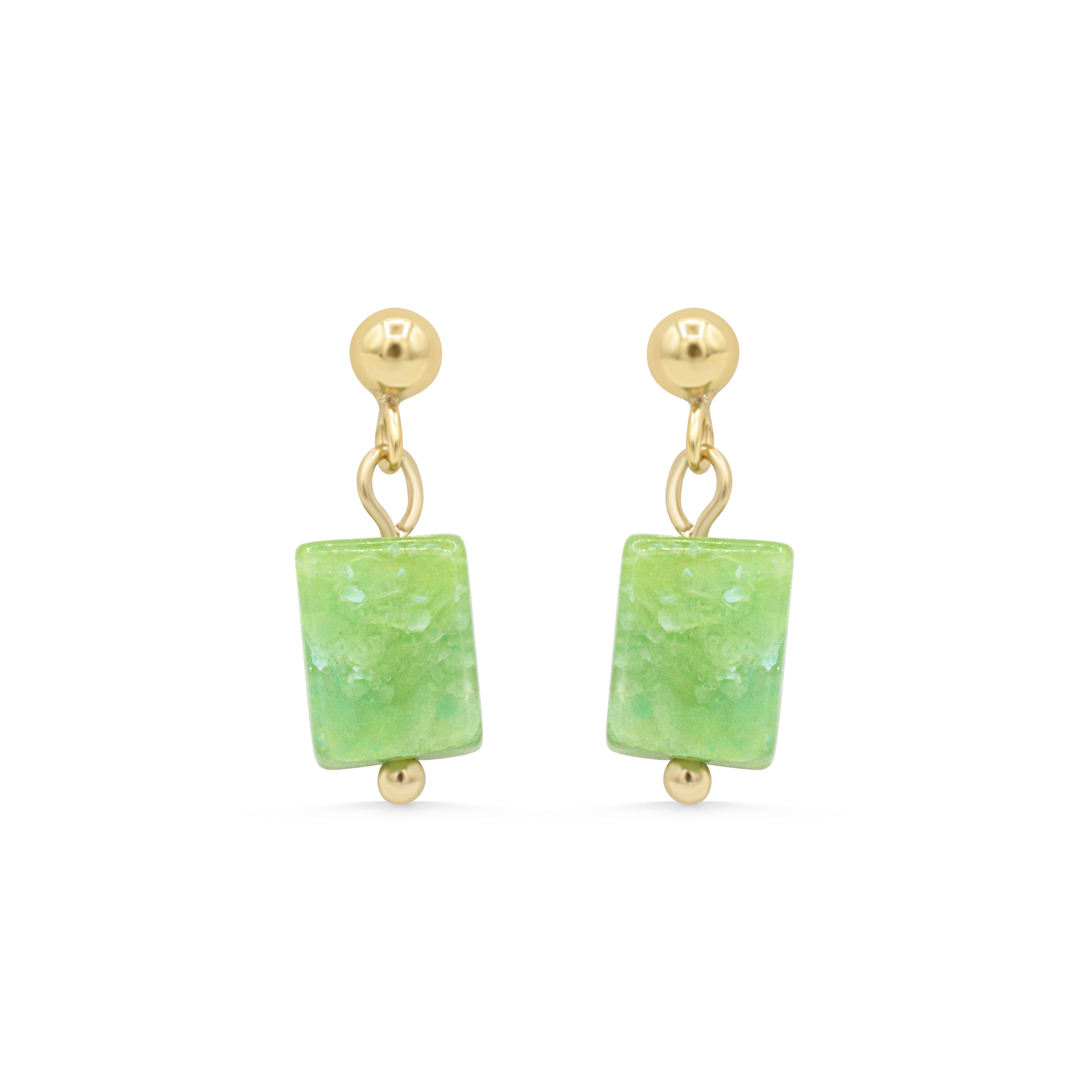 These genuine Peruvian green opal drop studs are set in 14K gold fill, showcasing the stone’s soft sea-green tones and natural variations. Celebrated for its soothing and restorative energy, green opal is believed to bring emotional renewal, balance, and a sense of peace.
