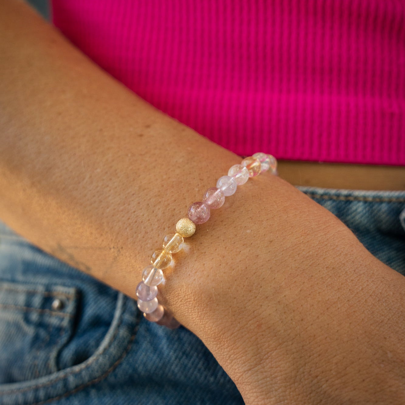 Handmade in Vancouver and accented with a 14K gold filled bead, this bracelet combines natural beauty with a touch of refined elegance — a meaningful piece that connects energy and style.